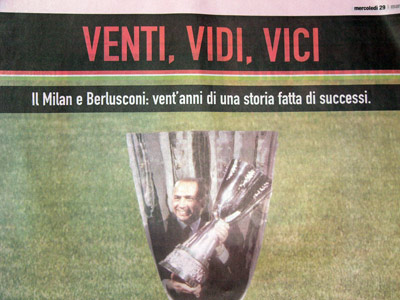 どの国でもそうでしょうが、 国民が政治に満足していれば 現首相の続投を望むでしょうし、 そうでなければ再選をはたすことはないでしょう。 どの国でも、とは言っても、ここはイタリアです。 ここは何が起こるか誰にも判らない 「不思議な国」なのです。 とにかく何でも起こり得ます。 予想通りもあり得れば、 予想外のことも、思いもかけないことも。 イタリアには“par condicio”と呼ばれる法律があります。 ラテン語で「すべての人を平等な立場に置く」 という意味で、 ひとりの政治的立候補者が 他の候補者より新聞やテレビで 大きく露出することを禁じています。 それは貧しい層よりも富裕な層の候補者が 選挙活動で有利にならないためです。 “par condicio”法によれば、 もし、あるテレビ放送がベルルスコーニや 同盟の人物に1時間を提供するなら、 同じだけの時間を対立候補側にも 提供しなければならないということになっています。 さて、次期5年間のイタリア政府首相の候補者はふたり、 ベルルスコーニとロマーノ・プローディです。 メディア王でもあるベルルスコーニが、 新聞やテレビでの選挙活動で有利なのは 言うまでもありませんが、 この "par condicio"法の壁を、 彼はどうくぐりぬけるのでしょうか? ここに「サッカー」という要素が、登場してきます。 ![]() 選挙の事前調査では、 プローディが僅差で勝つだろうということですが、 ベルルスコーニはACミランのティフォーゾたちの愛情に、 票の的をしぼっています。 そのために彼はACミランの試合を観に行き、 政治家としてではなく 「ACミランのオーナー」としてインタビューさせ、 最も売れているガッゼッタ・デッロ・スポルト紙の紙面も、 「スポーツ人」として扱っています。 ![]() イタリアで、ヨーロッパで、世界で、 ACミランの勝利を導いたベルルスコーニです。 ともに20年を歩んだACミランの、 そのオーナー会長であることは何票の値うちがあるのか、 それは良くわかりませんが、しかし、 サッカーとは縁もゆかりもない「政治家プローディ」より、 ベルルスコーニになんらかの利点をもたらすのは確実です。 ACミランはまさに20年前の1986年に ベルルスコーニに買われました。 その時期にACミランは世界で最も価値ある結果を保ち、 その知名度と評判が 彼の政治的なキャリアに栄養をあたえました。 ベルルスコーニがテレビで好んで発する言葉のひとつは、 こうでしたね。 「私はイタリアを、 私のACミランのように勝ち組にする」 何人のイタリア人たちが彼を信じたかが判るのは、 4月9、10日の総選挙の後です。 ![]()
