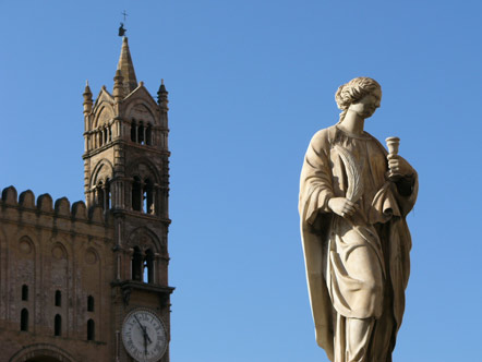 ヴァカンスの終り。![]() 飛行機が空を上昇していきます。 その空には雲ひとつ、ありません。 眼下に見える海の碧は、 8月の太陽を映して目も眩むほどです。 この旅‥‥ぼくのシチリアでのヴァカンスは、 始まったのと同じ場所で終わります。 パレルモは、肌をブロンズ色に変える太陽の街でした。 そしてレストランから溢れ流れる磯の香の街。 ここのレストランは「和風」を追いかけている店も多く、 そのシンプルさが魅力的な料理は 「シチリア風寿司」として、ちょっとしたブームでした。 実際には、米飯抜きなので 「寿司」というよりは「刺身」ですけれど、 その磯の香は、 海からの贈り物で3千年も暮らしているシチリア人たちをも、 うっとりとさせ、魅了しているのです。 ![]() 先週も書いたように、 シチリアは様々な異文化の民族に支配されてきました。 ですからパレルモの街にも、 バロック様式の数々の教会、 ノルマン様式の広場、 アラブ風の家屋や中世の城など、 時代によって異なる建築様式が混在しています。 それも、日々の暮らしの快適さや素朴さよりも 「完璧な美」をそれぞれが追求した結果、 街そのものがまるで広大な庭園のようです。 ![]() シチリアは、ぼくらイタリア人のあいだで、 いまブームになっています。 特にミラノやトリノなど大都市で働く人びとは、 1年間節約を重ねて 夏の1ヵ月のヴァカンスに備えるのですが、 フランスのコート・ダジュールやスペインや、 その他の観光地にかわって ここ数年注目されているのが、 この「シチリア」なのです。 ![]() ![]() イタリアは経済不況です。 数年前に「リラ」から変わった「ユーロ」が 物価を引き上げ、夏のヴァカンスに出かけたい人は、 まず節約が必要だと思い知りました。 節約して用意した大切なお金で、 どこへ行きましょうか? 目の保養のためには目に映る景色の素晴らしさ、 嗅覚のためには吸い込む香り、 味覚のためにはその土地の素晴らしい料理が必要です。 これらをぜんぶ備えているのはシチリアだと、 彼らは気付きました。 太陽と海と、他に類を見ない歴史の遺産と、 色とりどりで味わい深く ヨーロッパ屈指の洗練された食事、 これら全ての幸せをシチリア旅行で味わえる、と。 シチリアは人形劇「プパッツィ」も有名です。 そこに展開されるロマンスや冒険の数々は、 若者たちを初めての恋の予感にときめかせ、 幼い子供たちをたくさんの色の遊びで釘付けにし、 誰もを嬉しい驚きで陶然とさせてしまいます。 ![]() この街に、そしてこの土地に、 世紀を超えて存在する美しさ‥‥ ぼくは郷愁にも似た感動とともに、 パレルモから再び飛び立ちます。