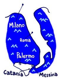 そして、やはり健闘しているシチリアの2チームには、 それぞれに日本人がいます。 まずメッシーナには小笠原満男がいますね。 あまり出場しませんが、 出ると素晴らしいプレイをします。 もう一方のカターニャには日本人がふたりいます。 ひとりは将来性の有る若い森本貴幸です。 彼は今でも重要な若い力のひとりですが、 マリーノ監督はその将来をとても重要視しています。 カターニャのもうひとりの日本人は、 柔道整復師の柴田匡一郎さん。 もともとは森本選手の通訳としてシチリアに移りました。 その後、日本で大きな能力を生かして展開していた仕事を カターニャで再び始めました。 小笠原、森本、柴田の3人は、 こんなにも日本から遠いのに 似ている所もあるシチリアをみつけました。 シチリアにも火山があります。 カターニャの近くにあるエトナ火山は 富士山によく似ています。 本島の近辺にある小さな島々にも いくつかの火山があります。 ![]() サッカーが世界をつないでいますね。 シチリアの「サッカー的挽回」には 甘さと酸っぱさが同居していますが、 そこには「日出づる処」という詩的な名前を持つ国、 イタリア語では「ジャッポーネ」と呼ぶ日本も、 ちょっと味付けに加わっているというわけです。 ![]()
