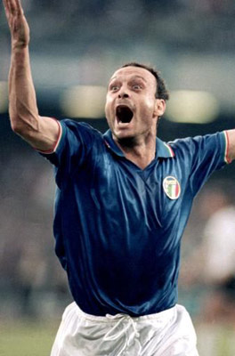 「ジュビロ磐田の重役たちが 私にその提案をしてきた時、 私は驚きました。 当時の私は、日本について 何も知らなかったのです。 私の頭に浮かぶ日本のイメージといえば、 写真でしか見たことのない富士山だけで、 他には何も知識がありませんでした‥‥」 ──それで、その後どうなりました? 「私は、まず日本の人びとのことや、 その習慣や伝統について興味を持ちました。 サッカーをプレイすることより強くね。 だってボールを蹴るという作業は、 結局はイタリアや世界の他の国でも 大差ありませんからね、でも‥‥」 ──でも、何ですか? 「それまでの私は 怒鳴り、熱狂し、時には行儀の悪い振舞いさえする イタリアの観衆に慣れていました。 ところが日本では、 私がジュビロ磐田のシャツを着てプレイした どの競技場でも、 だれもが私にたいして礼儀正しく、 敬意をはらい、愛してくれました。 私は何のためらいもなく安心して、そう言えます」 ![]() ──日本のことで何があなたの心に残りましたか? 「美意識です。 イタリアは遺跡や世界で最も美しい街の数々、 並外れた素晴らしい景色などが たくさんある国だと思います。 ローマ、ヴェネツィア、シチリアなどを 思い起こすだけで分かりますよね。 イタリア人なら誰でも知っている物たちですが、 誰もがそれらを愛しているとは限りません。 日本では常にバランスや調和が模索されます。 つまり調和のとれた物が美しいということです。 生け花も、完璧に手入れされた庭園も、 まさに芸術である漢字をふくむ書体などは 世界一エレガントだと思いますが、 すべてが調和の美です。 私は日本での4年間で多額の報酬を受けましたが、 なによりも私が学んだ事は、 より高く羽ばたくということについてです‥‥」 ──日本へ仕事をしに戻りたいですか? 「もちろん。 日本のサッカーは発展し続けていますが、 子どもたちのためのサッカースクールが足りません。 私は現在、故郷であるシチリアのパレルモに、 5才から16才までの500人の少年が通う サッカースクールを持っています。 彼らはここに通ってサッカーを『学んで』います。 このタイプのスクールは 日本でも役立つのではないでしょうか。 そこでは多くの少年たちが ボールを足でどう扱うかを学べるでしょう。 日本でも少年たちは学校で学び、 大人たちは仕事の中で学んでいます。 イタリアやヨーロッパに一般的にあるような サッカースクールに子どものうちに通うことで、 日本のサッカーはとても重要なものになるだろうと、 私は確信しているのです。 いずれにせよ、日本のサッカーはエレガントで 美しくあり続けると思います。 なぜなら日本人は、 エレガンスや美しさは何事にも欠かせないと 考えているからです。 その考えは正しいと思います。 将来的に日本のサッカーはヨーロッパ型より ブラジル型に近付くでしょう。 そして、日本という国が これだけ私の心に残っているのですから、 そういう世界で私は仕事をしてみたいと思います」