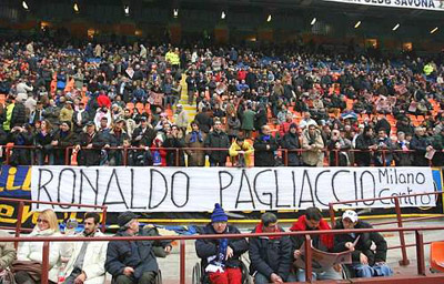 ミラノの街のもう半分、 つまりインテルのティフォーゾたちは、 彼を小馬鹿にしたような 不作法でさえあるやり方で彼に挨拶しました。 ![]() ロナウドが厚い友情で結ばれていると思える インテル会長のマッシモ・モラッティは、 彼の以前のチャンピオンがACミランに来た事を 歓迎しませんでした。 「彼がいずれはミラノに戻ると分かってはいたが、 残念なことに間違ったチームに来た。 いずれにせよインテルは彼を全く求めていなかった。 私たちには彼は必要では無い。 ただ落ち着き先がACミランだというのは、 私の気にさわる」と モラッティは述べています。 しかし実際のところロナウドは、 純粋に経済的なことでACミランを選んだのです。 ![]() たしかにアラビアが 彼にもっと高額を提供できたのは事実ですが、 サッカー的にそう大事ではない国のカンピオナートで プレイしても、スポンサーは喜ばないでしょう。 スポンサーを降りる会社も出るでしょう。 レアルにいたころは、 彼の広告の肖像権は彼とチームに 半分づつ分けられていました。 これからは全部がロナウドのものになるでしょう。 そういうわけで、ACミランに落ち着いた彼が 今後18ヵ月のうちに稼ぐであろう額は、 契約金とスポンサーからの報酬をざっと見積って 少なくも3千万ユーロには届くでしょう。 良い選択をしたものです‥‥。 ![]()