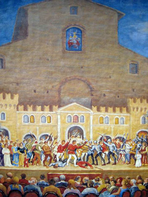 フランコのモンテプルチアーノ案内。![]() ぼくのバカンスが始まりました。 旅の始まりは、トスカーナ地方のモンテプルチアーノです。 ミラノから行くとフィレンツェを通り越してさらに南、 シエナの近くに位置します。 世界遺産に登録されたオルチャ渓谷からは 約20kmのところです。 トスカーナのモンテプルチアーノへの旅ということは、 「ルネッサンス時代への旅」と言えます。 レオナルド・ダ・ヴィンチやミケランジェロなどの 芸術家がたちが活躍した、 ヨーロッパ社会の最も美しい時代であるルネッサンスは、 トスカーナを中心に興りましたから。 ![]() ![]() ![]() まさにモンテプルチアーノは、 ルネッサンスの詩人アンジェロ・ポリツィアーノの 生地でもあります。 彼は、イタリアの芸術の発展に大きく貢献した ロレンツォ・ディ・メディチの、宮廷詩人でした。 ロレンツォは豪華王(イル・マニーフィコ)とも呼ばれ、 ルネサンスの芸術の巨匠たちを後押しして育てた人です。 ![]() トスカーナは、つらなる丘の美しさでも有名です。 そしてこの地に中世に生まれた多くの街と同様に、 モンテプルチアーノも丘の上にあります。 ![]() そこから周囲の、 イタリアでも有数に品質の高い葡萄を育て 最高のワインを生産する小さな丘を、 いくつも支配していました。 世界的に愛されているワイン、 「ブルネッロ・ディ・モンタルチーノ」と、 それに最も近い従弟みたいな 「ノービレ・ディ・モンテプルチアーノ」が、 ここで造られています。 ここを訪れたのは、 7月の太陽が燦々とふりそそぐ日でした。 でも、夏の暑さが厳しいフィレンツェとちがい、 ここには緑があふれていますから、 空気は果てしない春のように快く、 ぜんぜん蒸し暑くはありません。 世界史にも刻まれた高い芸術性をもとめて、 多くの観光客がモンテプルチアーノを目指します。 イタリア人も、外国人も。 ここでは坂のある細い道や アンティークで気品のある建物が、 独特な雰囲気をかもしだしています。 もしも、陽の光が甘味なクライマックスに達する 日没まぎわに散歩することができたなら、 もはやこの世のものとは思えないその美しさは、 このままずっと、ここにこうしていたい、 時間よ止まれという気持ちになるほどです。 ![]() 観光客たちは、道で、 ほとんど座り込んでくつろいでいます。 その傍らのバールでは、 ここの伝統的な他に類を見ないワイン、 滅多に味わえないからこそ格別に美味しいワインが飲めます。 近頃はやりの、どこで飲んでも同じ アメリカ式清涼飲料水など、 飲んでいる場合ではありません。 ![]() 「ノービレ」ワイン貯蔵庫への訪問は、 またとない素晴らしい経験になるでしょう。 素晴らしいオーク材の百本ほどの樽の中で、 ワインが熟成の時を過ごしています。 めでたく「ノービレ」になるには、 最低7年が必要なのだそうです。 こうして熟成したモンテプルチアーノのワインは、 「神々の飲み物」と言えるほどの味わいになります。 ここから旅立つワインは、普通の食事をさえ 思い出に残るほどの印象的な晩餐に変えてくれるでしょう。 ワインを買おうか、どうしようか迷ったら、 まったく無料の試飲コーナーも用意されています。 急いで決めることはありません、 まずゆっくりと、愛情もこめて、 ワインを味わってみましょう。 そんなモンテプルチーノの1日は、 ありきたりな1日にはなりません。 「人生の至福の時」が、そこにあります。 だからこそ、可能であればぜひとも訪れてください。 「訪れるべきだ」と言っても言い過ぎではないと、 ぼくは思います。 ![]()