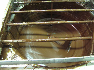 チョコレートを大きな鍋で用意し、