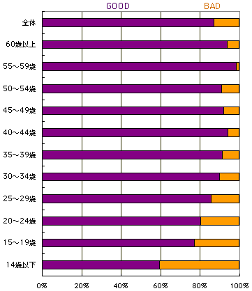 ![]() GOOD86.8%、BAD13.2%で、 「敬語って、 GOODなイメージ」 が多くなりました!!