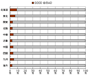 多くのメールで触れられていたのが、 「北海道にはゴキブリがいない」という話です。 では、北海道のGOOD or BADはどのくらいなのでしょうか? 他の地方と比べてみました。