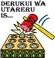 いただいたメールを紹介します。 皆さんが知りたがっていた、「いいイメージ」の 理由もたくさん届いています。 ■■■■■■■■■■■■■■■■■■■■■■■■■■■■■■■■ 「出る杭」を「枠からはみ出しているモノ」とか 「目立つモノ」として受けとめるならBADです。 でも、今は「出る杭」を「役割分担を果たしてないモノ」 として捉えようとしているので、 「役割をキチンと果たしなさい!」との意味に 自分勝手に解釈してGOODにしました。 (かか・三重県・女性・48歳) たしか、わが県の、県職員の広報誌のタイトルが 「DERUKUI」だったと思います。 自ら出る杭になって県を良くしよう、という意味があると 数年前ニュースで言っていました。 いいタイトルだなあ、と思っていたものです。 出る杭の意見を尊重できる世の中になってほしい。 だから、「出る杭は打たれる」はBADなイメージです。 (おーるどりばー) 「出る杭」にも色々あると思いますが、 私の身の回りで、周囲と協調せず、 スタンドプレーな行動が多い人が おりまして、その人は常日頃 「自分は出来る奴だ、周りの奴等は馬鹿ばっかりだ」 と放言しています。 (出来る人はちゃんと周囲・状況を見回して 適切な対応が出来ると思いますが・・・) 「出る杭はどうして打たれるのか」という事を 考える事も必要だと思います。 そんな訳で今回Goodイメージです。 (東京・女性・29歳) 打って平均化をして済む時代でもない、 ということで、BAD選びました。 何でもそつなくこなすとか、 無駄に出しゃばったことをするなとか、 そういう時代もあったとは思いますが、 今の時代、何かに秀でるとか、特化した能力とか、 そういったモノが無いと 生き残れないような感じがあります。 文明が高度になりすぎて、 個人の頭では全部を把握するなんて 到底無理というか。 まぁ、出る杭はともかく、 飛び出した釘とかは危ないので 打った方がいいでしょうね。 というか、最近の世の中、 釘もいっぱい飛び出してます。 (yanma・東京・男性・27歳) 今のところbadなイメージなんですね。 ここが日本だからでしょうか。 高校の頃の近所のアメリカ人の人に、 (元々の言い回しは忘れてしまったのですが、) “キイキイ言うタイヤには、 油をさしてもらえる”という(ような) 諺を教わりました。要するに、 「人にアピールすれば、 その意見に賛同する者が現れて、 物事が円滑に進むんだよ」 ということのようです。 「あなたもそうなりなさい!」 みたいにアドバイスされました。 確かに、「何でもいい」という人より、 「私、○○がしたい!(好き!)」という人には、 「私もー!」と、仲間が増えてくることがありますよね。 「出ている杭」を「良い!」と言ってくれる人が 一人でもいてくれたら、 無難に生活するより心強い気がします。 ので、私はgoodなイメージに、一票です。 あまり迷わずBADに入れました。 僕自身の生き方としては、 出る杭たれ!個性万歳!なのですが、 いかんせん言い方が悪いと思います。 英語の格言に、出る杭は打たれるとほとんど同じ意味で 「木は大きくなればなるほど風当たりが強くなる」 という言葉があるのですが、 その言葉の意味の中には 「大きいほど存在感も増す」という意味も入っているそうです。 人と違う所を長所ととらえるアメリカの 良い部分が出ている名言だと思います。 目につくものは理由なく叩くというニュアンスにも取れる 日本の言い方にはあまり賛成できません。 (ミツボシ・会社員・東京・23歳) GOODです。 いつの時代にできた格言なのかは、 わかりませんが。今の日本社会をうまく 言い得ているような気がします。 が、悲観的にとらえてるんじゃないんです。 たとえ、打たれてもくじけるな、 世の中とはそういうもんなんだと。 そんな、諦観を教えてもらっている ような印象を受けます。 (長野県 24才 男) 「Bad」に入れました。 自分から海外に出た人は多分日本では「出る杭」で 散々「打たれた」人が多いのではないかと思います。 私も海外では出る杭としては打たれた事はなく、 どちらかというと「全然出ない(目立たない)杭」です。 この言葉を聞く度に日本で「変人」とか そういう風に言われた日々が頭をよぎり嫌な気分になります。 とにかく日本では自意識が過剰かもしれませんが、 悪い意味で目立ってしまい、いつも身を隠す事ばかり考えて 生活していました。何とかみんなと同じ様になりたい、 そんな事ばかり考えていた気がします。 日本になんか帰りたくないって本当に思います。 (帰りたいけど) 以前筑摩書房の松田哲夫さんにお目にかかる事があって、 「日本は窮屈で・・・」というお話をしたところ 「出る杭は打たれますが、出過ぎた杭は打たれない・・・ って言いますよ」 と言われはっとしました。 意気地が無い私なので海外に逃げてしまいましたが、 お強い方はすごいなぁ・・・と。 「出過ぎた杭は打たれない」ということわざ? の方が普及してくれればいいなと思い