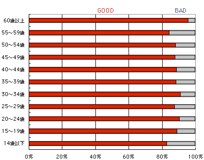 メールをありがとうございました。 DVDのよいところといまひとつなところが、 よくわかりました。 みなさんもぜひ読んでみてくださいね。 ■■■■■■■■■■■■■■■■■■■■■■■■■■■■■■■■ BADに投票しました。 というのはDVDには種類が多すぎるからです! 自分が一番最初に買ったDVDは RAMという形式のものだったのですが、 なんと自分のパソコンではRAMは 使えない環境だったのです。 この落ち込みから立ち直った3ヶ月後、 今度はいまいましいRAMは無視して DVD+Rという形式のものを買いました。 ところがこれまたびっくり!+Rまで使えなかったのです! しかもこの時5本入りのお買い得まとめ買いセットを 買っていて、へこみ具合が3割り増しした気分でした…。 家には使えない空のDVDが6つしまってあります。 6つ足せばとてつもない情報量…。 これを機会に普及したばかりの機器には 注意したいと思います。 GOODに投票しましたが。。。 ビデオよりスペースをとらなくていいとか、 特典がついててうれしいとかGOODな要素が多いのですが、 子供(3歳)が自分の好きなシーンだけを頭出し (というのか?)して見ているのを見て、 ちょっとなーと思っています。 好きなシーンがすぐ見られる=好きなシーンが出てくるまで がまんする必要がないということで、 ひいては辛抱するという気持ちが なくなってしまうのではと思ってしまって。。。 まあメリットのほうが多いのは確かなんですけど。 (ぷ・千葉県・女性・30代) もちろんGOODです。 だってDVDですよ?きれいだし、劣化しないし、 最近は半年くらいですぐDVD化されるしね。 ただ、値段なんですよ。 ハリウッドものは大量生産で3,000円くらいで 手に入るけど、私の好きなものは下手すると 5,000円くらいする。 しかも、古い作品は特典映像もないしなー。 2,500円くらいなら、どんな映画も即買いなんだけど。 でも、GOODですよ?GOODなんだけど、はい。 「BAD」にあえて投票します。 映画をはじめ、映像を見るためだけに考えたら、 当然GOODですよ。 場所とらないし、映像はきれいだし、文句はありません。 だけど、記録メディアとして考えると、サイテー。 ビデオの二の舞の消費者不在の なんだかよく分からない争い。 大きく分けただけで、3種類の規格、しかも互換性無し。 次世代規格ではさすがに統一規格が出るだろうと 思っていたのに、またまた同じことの繰り返し。 いったい誰のためのDVDなんでしょ? 性能面で大きな差が無いのなら、いっそのこと じゃんけんでもくじ引きでも構わないから、 どれか一つの規格に統一して! お願い! (ぶな) DVD、夢の機械です。 私が中学生の頃、夏休みの理科の宿題で こんな未来が来たらいいな、 という「未来の夢」を画用紙に描く宿題がありました。 そこで私が書いたのは、 「自分の家で、まるでテープのように手軽に、 ディスクに画像を保存できる機械」 というもの。今でいうDVDレコーダーです。 その頃、異様に録画とか画質の劣化に ウルサかったのです。(どんな女子中学生やねん!) 方式をメーカー間で定めてはほしいけれど、 とりあえずは私の長年の夢でしたので、GOODです。 (兵庫県・女性・28歳) 思い起こせば昨年の春、インターネット懸賞で 32型プラズマテレビを当ててしまったのが はじまりでした。 それをきっかけに念願のDVDプレーヤーを 思い切って買ったのが運の尽き。 すっかりDVDによる映画鑑賞にはまってしまい、 わずか1年足らずのあいだに40枚近く (TVドラマのボックスセットを入れるとそれ以上)の DVDを買ってしまいました。 ビデオならそんな所有欲はわかないのに、 なぜかDVDだとすぐ欲しくなっちゃうんですよね。 まさに”なんでだろう?”という心境。 コンパクトとはいえ、集まるとけっこう場所を 取るのですが、身体に障害があって あまり外に出られないぼくにとっては、 いまのところ最高の映画環境を与えてくれるDVDは、 当然○です。 できればホームシアターセットも欲しいなあ。 (竜巻小僧) そりゃもうGoodでしょう。 収納もコンパクト、画像劣化もあまりなし、これで 録画できる規定が各社共通になれば文句なしです。 もう14年くらい早くこういう機械がお手頃な値段で 出回っていたら、英語の専門学校に通っていた私も 苦労が1つ減ったかもしれません。 ヒアリングの勉強をするのに洋画のビデオを借りてきて、 普通に再生すると当然のように字幕が出てきますよね? 字幕を見ないように努力するのもバカバカしいので、 字幕部分をガムテープで隠して見ていたんです。 それがDVDだと、英語字幕まで出るじゃないですかっ!! 特典映像も満載じゃないですか!! 一粒で何回も美味しいDVD、素敵です。 (雄詠・会社員・神奈川県・31歳) DVDはbadです。 セルビデオショップをやっていますが、 DVDはVHSより儲けが少ないからです。 でも、個人的に買うとなったら断然DVDだなあ。 (のぶ) だんぜんGOODです! ビデオだと、ヨーロッパ版を 日本の機種で再生できません。 日本のプレーヤーはアメリカ