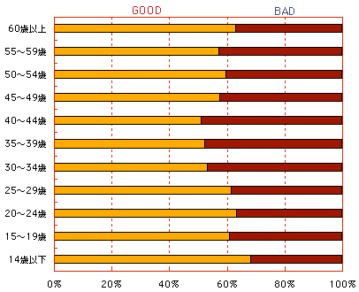 年齢別のGOODorBADは以下のとおりです。 20代以下の方から、支持をいただいているようです。
