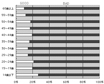 年齢別のGOODorBADは以下のとおりです。 20代以下の方から、支持をいただいているようです。