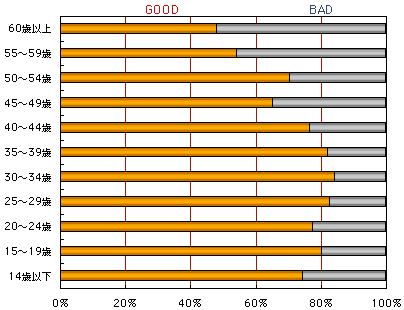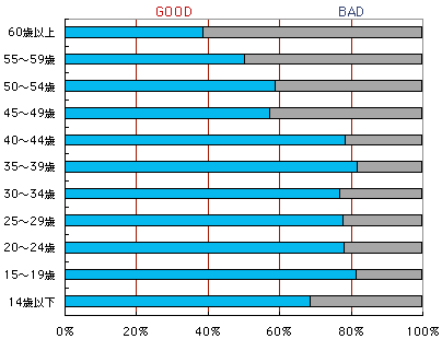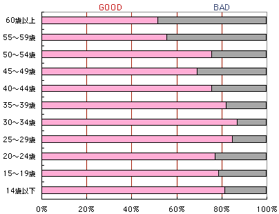 今回はめずらしく、年齢による差が激しくなりました。 年配の方にGOODが少ないです。