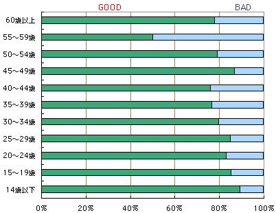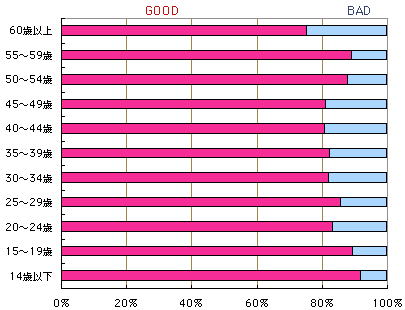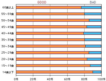 男女別では、前回に続き、 女性のほうが若干、GOODイメージが多くなりました。