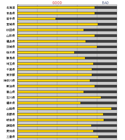 県別のGOODorBAD?を見てみました。 やはりというか、西の地方にGOODが多いようです。