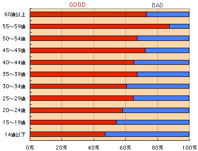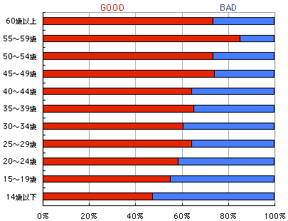 年齢別に見てみました。 年齢が上がるにつれて、GOODイメージが増えています。