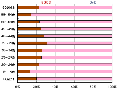 男女別に見ると、はっきり差がつきました。 男性の方が断然GOODが多くなっています 。