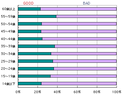 年齢別に見てみますと、 学校に行っている世代と、年配の方に とくにBADが多かったようです。