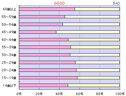 リクツはとにかく、自分自身の気持ちが、 こいつをグッドイメージ(GOOD)でとらえているか、 バッドイメージ(BAD)でとらえているか、 率直に答えてください。 どちらでもない、という気分の場合は、 むりやりにでもどちらかに決めてくださいね。 ついでなので、年齢層と性別と地域もクリックしてね。 あとで、傾向なんかを探ると、また遊べそうだから。 ついでに、テーマとしてとりあげてほしいモノゴトも 募集いたします。 宛先は、メールで [email protected]まで。 タイトルは、必ず、「モノゴト」としてくださいね。 (締め切りは、15日(水)中です。 結果は16日(木)に発表します。 次の更新は19日(日)の予定です。) |