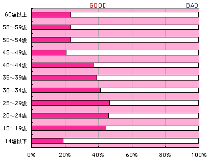 男女別では、大きく違いが出ました。 男性の方がGOODイメージが多くなっています。