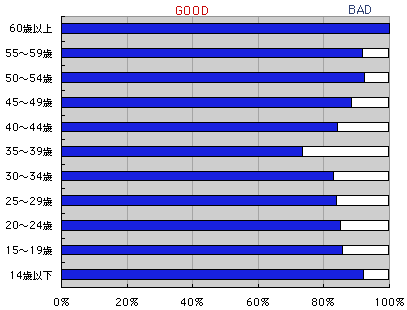 リクツはとにかく、自分自身の気持ちが、 こいつをグッドイメージ(GOOD)でとらえているか、 バッドイメージ(BAD)でとらえているか、 率直に答えてください。 どちらでもない、という気分の場合は、 むりやりにでもどちらかに決めてくださいね。 ついでなので、年齢層と性別と地域もクリックしてね。 あとで、傾向なんかを探ると、また遊べそうだから。 ついでに、テーマとしてとりあげてほしいモノゴトも 募集いたします。 宛先は、メールで [email protected]まで。 タイトルは、必ず、「モノゴト」としてくださいね。 (締め切りは、5日(水)中です。 結果は6日(木)に発表します。 次の更新は9日(日)の予定です。) |