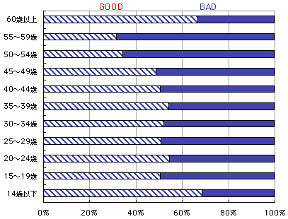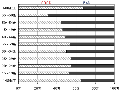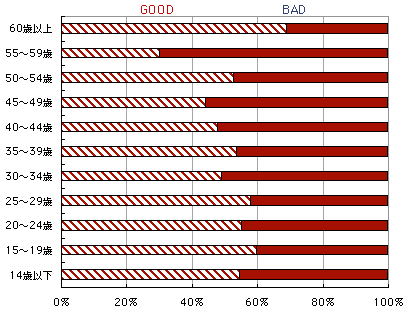 男女別のGOODorBADです。 意外なことにかもしれませんが、 性別による差はほとんどありませんでした。
