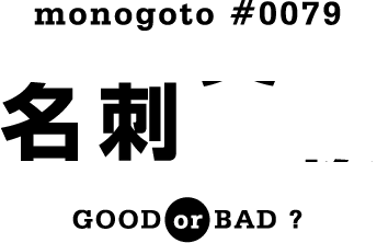 ![]() 投票、ありがとうございました!! 投票総数は2,414です。結果を発表します! ![]() GOOD52.6%、BAD47.4%で、僅差で 「名刺交換って、 GOODなイメージ」 と、なりました。