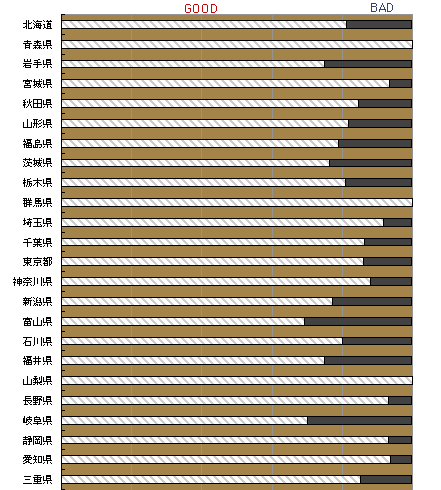 都道府県別の、GOODorBADです。 讃岐うどん以外の名物うどんがあるところは、 わずかですが、比較的BADが多いようです。