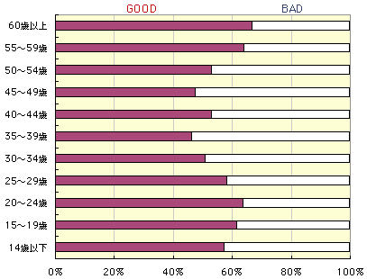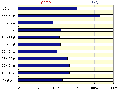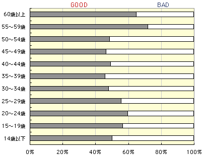 今回の結果を年齢別に見ると、年配の方のGOODの率が 非常に高くなっています。