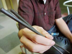 先週、放送された「GOODS JOCKEY」の初回の商品は darlingが小山薫堂さんから紹介をしていただいて、 重宝している「青黒檀の江戸八角箸」でした。 ![]() 商品が決まってから、この1万5000円のお箸を どのように伝えていくか いろいろと調べ、取材をし、考えていきました。 ほぼ日乗組員とともに、 調査、取材にフル回転をした GOODS JOCKEYの構成作家、 江秀樹さん(顔は疲れた藤井隆さんに似ています)に 番組では放送されなかったこぼれ話を聞いてみました! ほぼ日:はじめは、このお箸のことを まったく知らないところからはじまったんでしたよね。 江:はい。糸井さんや糸井事務所のメンバーに お箸の話を聴いてはじめて知りました。 まずは直接行って聴いてみようって思って、 いきなり佃島まで行ったんです。 ほぼ日:場所はすぐにわかりましたか。 江:民家が多い場所なので、 はじめは通りすぎてしまいました。 庇を出して、商売をしている感じの家が ひとつだけあったので、「ここかなぁ」って 思いながら戻ったんです。 ![]() ほぼ日:ちょっとお店っぽい感じだったんですか(笑)。 江:そうです。でもまさかなぁ、って半信半疑でした。 どちらかというと下町の縁側に棚を出して、 お箸を置いているって感じでした。 一級漆器製造技能士をとった時の写真が 飾ってあるのですが、 お箸と漆の漆器は無造作に置いてあるんです。 ほぼ日:江戸っ子のオヤジさんなんですよね。 江:そうそう、ちょうど 「急いでんでしょ。えっ? いいよ。いいよ。金は〜」って 威勢よく電話口で話しているところだったんです。 ほぼ日:中島さんにはどのようなことを教わったんですか。 江:番組の中でも糸井さんが試されたんですが、 こんにゃくがお店にも置いてあって 「ちょいと、つまんでみなよ」って言われたんです。 実は、ぼく箸の持ち方が悪かったので、 つまめなかったんです(笑)。 ほぼ日:売り文句が 「こんにゃくの端がつまめる」なのに‥‥。 江:そうなんです。中島さんに 「持ち方が悪いよ。箸は七分って言って、 上のほうを持たなきゃいけねんだ」って、 まずは持ち方の指導をしてもらっちゃいました。 ほぼ日:十等分をしたところの七分目ということですか。 江:そうです。 下のほうを持ちすぎると箸がすれ違ってしまうんです。 ![]() ×注意された持ち方(下のほうで持っています) ![]() ○教わった持ち方(七分のところで持っています) ほぼ日:お箸の持ち方以外にはどのようなことを 教わったんですか。 江:番組の中で、いろいろと糸井さんが話していたので、 聴いていただいた方は、わかっていると思うのですが、 青黒檀は非常に貴重な木なんです。 高いだけではなくて、 お箸に使える部分は、少ししかないんです。 木目がそろっていないと使えないんです。 ほぼ日:お箸にできる部分が少ししかないので、 どうしても高くなってしまうんですか。 江:「このパーツしかだめだ」っていう こだわりがあるみたいです。 ほぼ日:普通は青黒檀を使っているというだけで、 売りにしてしまいますよね。 江:このお箸を知って、 黒檀の箸がすっごく安く売られているのを みつけたんです。 「あれ? こんなに安いぞ?」って思って、 違いを中島さんに聞いてみたんです。 「安いのは、普通の木に黒檀を塗っているだけなので、 うちのとは違う」ということでした。 今回取り上げた江戸八角箸はまるごと青黒檀ですから。 最初、木から切り出してみて、 「お箸としていける」っていう 素材の部分のめぼしがついたら 立ちガンナという普通のカンナよりも 刃をたてたもので 4回角を落として八角にするんです。 立ちガンナで青黒檀のような硬い素材を扱うのは かなり難しいようです。 普通はガガガって、 ひっかかってしまたりするみたいです。 ほぼ日:中島さんがこのお箸をつくるのには どれぐらい時間がかかるんですか。 江:15分ぐらいみたいですね。 実際に作っているところを 見ることはできなかったのですが、 メンテナンスもずっとしてくれるので、 「どのようにしてもらえるんですか」って 聞いてみたんです。 ちょうどそこにあったお箸を やすりで研いでくれたんです。 研ぎ立てのお箸からすごくいい香りがしました。 ほぼ日:江さんはお箸を買ったんですか。 江:ぼくは少し安い紫檀のを買いました。 でもよくよく考えたらひとり暮らしだと ほとんど家で食事をしないんですよね(笑)。 まだ袋に入ったままなんですよ。 やっぱりちゃんと家庭を持つようになってから このお箸を使いたいです。 番組の中で、糸井さんも言っていましたが、 今のぼくにはちょっとまだ早い気がします。 ほぼ日:確かに、ずっと徹夜で、 家にほとんど帰ってなさそうですよね。 お疲れさまです!!