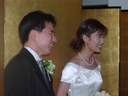 ◆今週の土曜日、 引き出物プレゼントに当選された、 健太郎さん(34歳)と葉子さん(34歳)の披露宴に daringが駆けつけ、披露宴のスピーチをします。 その模様を次回のこのページでお伝えしていきますね。 daringは、お2人の門出に、どんな言葉を添えるのか? 非常に楽しみなところです。 |