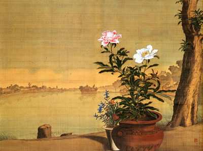 その芍薬を西洋画風に描いてるわけ。