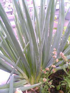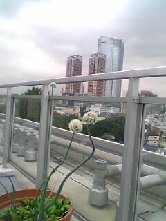麻布十番の仕事場のベランダに鉢植えしたタマネギは