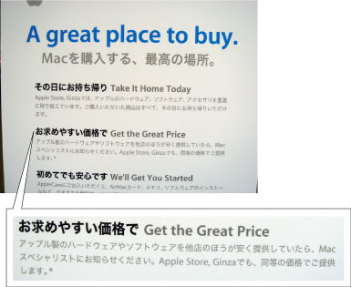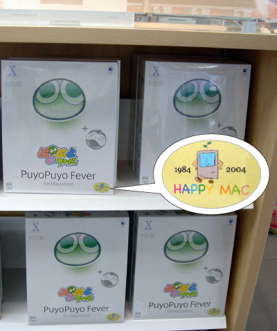 | 土曜日のアップルストアと「ぷよぷよ」マック版 以前に紹介した「ぷよぷよ」のマック版が ついに発売されました。 そして土曜日、いよいよと出かけていった アップルストアには、 以前こちらで制作したハッピーパースデーマックの ステッカーが貼られてたパッケージが 並んでいるではありませんか。 デザインも、マックっぽい。 セガさん、がんばりました!! 光栄の極みである筆者としては、 その風景写真を撮りましたので紹介します。 (他のマックデペロッパーの方で こちらのステッカーをご利用になられたい方が いらっしゃいましたらこちらまで) ![]() 実はこの日アップルストアで ひとつ大発見をしたのでご報告します。 いま話題のアップルストアというのは、 ブランドストアみたいに 「値引きません」というスタイルかと 思い込んでいました、が、 店頭に置かれている看板には 意外な文句が掲げられているではありませんか。 ![]() これは筆者としてはちょっとした事件でした。 アップルストアもけっこうがんばっていました。 これからは、よそで値段を調べて アップルストアで買う事にしようっと。 かっこいい袋に包まれた 新品マックを持ってかえりたいという人は 是非利用になってはいかがでしょうか。 ●●●● さて、学生の人はそろそろ夏休みです。 マンネリ化しつつあるゲーム業界では 人材育成が課題になっている、 というからでは決してありませんが、 ここらで短期の夏休み集中コラムを 始めてみようかと考えております。 名付けて 「中学生のためのゲームクリエーター講座」です。 決して対象が中学生に限った 内容というわけではありません。 一般的に語られているわりには あまりぴんときていない「ゲーム」という手法。 これを、私なりに整理してみたいという試みです。 ついぞ説明口調になりがちな私ですから、 なるだけシンプルに書いてゆきたい、 という意気込みをこめて 「中学生のための」としました。 小学生としなかったのは、 当用漢字やフリガナの使用がややこしくなるから。 毎週木曜日をメドに、 8月末まで続けたいと思っています。 一般のビジネスマンの方でも、 あるいは主婦の方でも、 仕事や人生のヒントにしてもらえればなぁ、 とはりきっていますので、ぜひぜひお楽しみに。 第1回「ゲームってなんだろう?」はもうじき始まります! |
