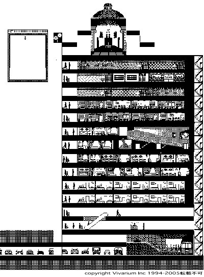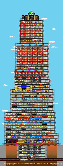| タワーGBA発売日によぎった想い出 この原稿を書いている本日4月28日、 「タワー」がやっと発売となりました。 みなさん、連休は家電店などによって 買ってやってください。 ニンテンドーゲームボーイアドバンス用です! さて、ここにきて急に発売がきまったものだから、 どたばたとやっておりました。 連載も滞りがちでごめんなさい。 さて、今回は、タワーにまつわる思い出話を 書こうかと思います。 タワーというのは、雑居ビルを 複合高層ビルへと変貌させるゲームです ![]() ↑プレイヤーの好きずきですが、 結果的にはこんなような 高層複合ビルを作る事になります。 複合高層ビルというのはつまり閉鎖都市なわけで、 住人たちの要望する機能がどんどんと増える、 それにあれこれと応えながら拡張してゆくわけです。 その肝となるのがエレベーター待ちのストレスで、 待ち時間が一定をこえると 彼らは出て行ってしまう→収入源が減ってしまう、 というトレードオフ構造がここに生まれ ゲームとなるわけです。 ![]() このタワーというゲーム、 1994年にマッキントッシュ用に 小規模に発売されて以来、 数えきれないスタッフの手を経て 数多くのバージョンアップ重ねていった作品です。 メイキングの話をすると、 サラリーマンをしていたときに、 新規事業の実験でゲームをメディアにしようという 実験的な動きがあって、 その流れで2本目をいわゆる脱サラして つくりはじめたものでした。 お金がないのでマック用として作り始めたわけですが、 当時のマックはまだモノクロームモデルも少なくなく、 デザインはモノクロームでしこしこと開始した次第です。 したがって動きはハイパーカードで シミュレートするなどして企画をすすめてました。 その当時の貴重な画像が残っているのでご紹介します。 ![]() ある段階からは、当時としては貴重な マックプログラマーさんをなんとか見つけて 決して高いとはいえない仕事のお願いを することになるわけです。 一番最初のバージョン「Tower1.0」は、 フリーのプログラマーA・Tさんと私とで作られました。 今では連絡先すらわからないA・Tさんですが、 感謝の念がつきません。 そして開発も佳境に入ると マックが16色から256色に移行しはじめ、 あわてて後半から堀田さんというデザイナーに ドット絵の手直し・追加を依頼。 Photoshopはあまりホピュラーではない当時は、 スタジオ8というドットペイントのソフトで デザインしていたのを記憶しています。 エレベーターの運行管理をモデル化するという 複雑な作業では脳みそがウニになるほど苦しみましたが、 解決の鍵は以前に NHKのクローズアップ現代という番組で 特集されたのでここでは割愛します。 で、長い経緯を経て発売となったのが このたびゲームボーイアドバンス用に出した 「ザ・タワーSP」の原型です。 初回は3000本。ゲームとしては 「たったの」という表現に なってしまうかもしれませんが、 当時のマックのソフトとしてはかなりいい数字でした。 ![]() ↑記念すべきタワー最初のバージョンのパッケージ フロッピー複製業者さんにあいみつをとって 一番安いところで複製してもらい、 自分たちで箱詰めして、という 限りなく手作業での初出荷です。 メディアネットワークさんという マック関連商社の手を借りて 専門店に卸してもらいました。 人がいないのでユーザーサポートも もちろん自分でやってました。 複雑系のソフトですからバグもあちこちにあって、 なかでも一番想い出深いのは 当時のマックでCentrisAVという テレビ互換モデルの特定のロットとの間で 原因不明の不整合が発生し、 ずいぶんと苦労したことです。 このバグの原因はいまだに謎で、 このロットが市場から消えてゆくことを 願うしかありませんでした。 バグが完全になくなった時には いつしかバージョンは1.2にまで進んでいました。 1995年のことです。 ![]() ↑タワーのパワーブック180c上でのデバック風景。 当時の開発現場は駒沢の一軒家でした。 ![]() ↑最初の印刷物の色校をチェックしています。 あれよあれよという間に増刷を繰り返し、 社員も増えていったのですが、 ブレイクのきっかけとなったのは海外デビューでした。 シムシティーの成功で急成長しつつあった MAXISの創業者と カンファレンスで出会ったのがきっかけです。 MAXISの会長は契約で渡米した時に 「君の会社ごと買おうとおもっているんだけど、 どうだい?」と聞かれたのですが、 操業したてで夢多き私はつい断ってしまいました。 もしその時にYESといっていたら‥‥ 今私は世界の大手エレクトリックアーツの 大株主になっていたことになります。 世の中、商売に意地は禁物ですよ、みなさん! 話は戻って海外版への移植にあたっては、 『なぜ夕方になるとカラスが鳴くのか?』 という私たちにとってはごく自然な習慣への 質問からはじまり、 「大聖堂の十字架をとってください」 「ゴミ処理場はrecycling roomとしてください」 といった事