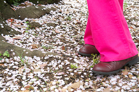 | ── | 便器の前の「ふたつの丸」に きちんと両足を置いて、用を足したり。 |