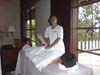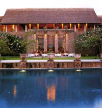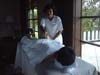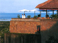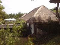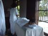ベランダ。四阿のようなベッドがでーんと据えられている。