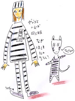 私は意外と動物好きです。 毎週「動物奇想天外」は欠かさず、見てます。 アフリカの羽仁進監督からの レポートは、それは見応えありますね。 トラ、ライオン、象、きりん‥‥。 大自然の中で生き抜く野生動物たちの姿は 本当に感動的で、毎回、涙なしでは見れません。 だいたい、地球上には私たちが知らない生き物が とてもたくさん存在しているのに わたしたちはそのことにあまり気付いていません。 知識として知っていても、 人間が地球に関して一番詳しい生き物だと 思っているように見えます。 わかりませんよ〜〜。 ひょとしたら「アリ」とかのほうが 人間の数倍偉くて、私たちのことを 馬鹿にしてるかもしれないし、 わたしたちが実は「アリ」のような存在で 誰かに上から見られてるかもしれないのだから!! そんな難解なお話を踏まえ、 「しまうま」 みなさん、好きですか? アフリカに生息する「しまうま」。 あの白と黒の縞模様、あれは味方同士が お互いによくわかるためだそうです。 と言う事は、敵からも見えやすいと思うでしょ? 違うんです。 群れになってるから あの「白黒」の固まりがダーっと広がっています。 そうなるともう、 怖くて近寄れないみたいなんですね。 だから、一匹きりになることは、とても恐い事です。 それに、「しまうま」は柄からもわかるように 「白」「黒」両方を選んで生きています。 この生き様、なんて素晴らしいのでしょう。 とかく、この世は「白、黒つけたがりすぎ」ます。 「白」でも「黒」でもないとき「グレー」とか 中途半端な逃げ道まで作ったりして! そんなずるいやり方はしませんよ! 「しまうま」は!! 「白」でも「黒」でもない場合 「白」と「黒」が混ざるのではなく 両方が独立して、存在してるんですよ! 「どっちでもない」けど「どっちでもある」!! ようするに夫の事を 「好きである」し「好きではない」のと同じ 二つが混ざって「普通」にはならないのよ! ああ〜〜。深い。 深い話です‥‥。 そんな美しい柄がとかく、話題になりやすい 「しまうま」ですが ちょっと、信じられないことを聞いてしまいました。 「うま」と「しまうま」って 実はあまり関係がないらしいんです。 「人」と「猿」は生物学的には「似てる」のですが 「うま」と「しまうま」は それ以上にちがう生き物らしいのです。 ねえ、どうゆうこと? それで家にある図鑑で調べてみると どこにもそんなことは書いてなかったのですが まず項目が分けてありました。 「うま」は「身近な動物」で 「しまうま」は「外国の動物」と題されていました。 ますます、謎は深まりますが、まあ、いいでしょう! とにかく、ここではわたしなりの考えとして 「うま」と「しまうま」。これは、別の生き物です! それを知ると、これは大変なことになりました。 みなさんも 「同じ人間なのにこの生き方は理解できないな」 と感じることって、あるでしょ? 「好き嫌い」だけの問題じゃなく 例えば「接点」がもてない感じ。 自分と関わる人ってどっか、 自分と似た感性ってあるじゃない? でも、全く歩み寄れない、どんなに知っても分からない人。 それって、「しまうま」と「うま」なんじゃないのかな? 「しまうま」だって動物園じゃ「うま」扱いでしょ。 「うまコーナーの近くにしまうまコーナー」だってあるもの。 外見が似てるというだけで同じククリにされて きっと、「しまうま」は「何か違う」って思ってるはずです。 そう、あなたが 「ここに居る自分、何か違う」と思ってるように!! ああ、かわいそうな「しまうま」。 もともと家畜としての「うま」と アフリカ生まれの野生の「しまうま」とじゃ ひとつ屋根の下、暮らすなんて、所詮、無理な話。 悲しいけど、お互いの将来のためにその事実を 認めなければいけません。 「しまうま」は「しまうま」じゃなく 「ゼブラ」として生きる方が似合ってるのよ!! 「ゼブラ」の生きる道をもう邪魔してはいけません。 「しまうま」そう呼ぶ限り、「うま」として 自分を偽り続けなければいけない「ゼブラ」。 きっと、「自分探し」しているはずです。 どうか救ってあげてください!! 「しまうま」が「ゼブラ」と呼ばれれば 私たち人間もきっと新たな「発見」があるでしょう。 あなただって、呼んで欲しい 本当の姿があるのではないですか? 心当たりのある方、「自分探し」の最中の方 ひっくるめて 「ゼブラさん」とお呼びしたいと思います! 次回、動物園にお出掛けの際は 「ゼ〜ブ〜ラ〜」と呼びかけてあげてください。 そして、余裕があれば 「オカピ」も見に行ってください。 関係ないけど、かわいいんです。これが。 「ピ」で終る名前なんて、あんまりないよ〜〜。
