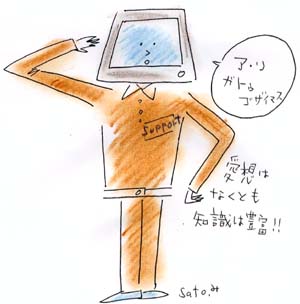 先日、わが家のPCをやっと ISDNからADSLに変更しました。 ついでにプロバイダーも変えたりして わたしにしてみれば、かなり「大掛かりな変更」。 何もわからないまま、 適当に工事日を指定していたので 平日の朝10時に工事が始まってしまいました。 手元には申し込みから、工事日までに送られてきた モデムやCD−ROMや契約書がたくさん‥‥。 どうやら、回線工事がすんでも、 こちらの設定が出来ていないと、 PCも電話も使えないことも判明しました。 夫は「帰ったらやるから、おいておけ」と言いますけど 夫はいつも9時過ぎないと帰らないのに そんなに我慢できるはずないでしょ!? 電話だってかかってくるでしょうし!! よし、自分でやろう!! わたしはこれからの人生のために、PCの接続、設定を 自分のこの手でやることを決意したのです!! ジャジャ〜〜ン!! 送られてきた物を一つずつ丁寧に開けて、 一つ一つ意味を確認し たくさんあるコードを一本一本つなぎ、 いらない物を取り去り! もう、気分は「電気屋さん」!! ここまではできました。 出来た証拠に電話が繋がったの! こ〜ゆ〜ものって「打てば響く」ね〜〜!! 算数のように、答えがはっきりしています!! さて、ここからが、涙涙のPCの設定。 本を見ながら自分のOSの手順で入力するんですが 何度やってもうまくいかない!! 本のとおりの「質問」が出てこないのよ〜〜! わかるでしょ?? 結局2時間くらいは、やりました。 何冊もある資料のあっちを見たり、こっちを見たり!! 「も〜〜、わかんな〜〜い!!」 で、ふと資料の最後の方にあった 「お客様コール」とかっていうのに目が止まりました。 しかもOSやセット内容によって、細かく分かれていて まずは、自分がどれになるのかを相談したいくらいでしたが 「これかな?」と思ったものに恥じらいながら電話したの! 「あの〜、できないんですけど・・・」 「はい、今PCをご覧になれる環境ですか?」 「はい、見てます」 「ではまず‥‥」 言われるままに作業して3分くらいで完了!! すごいぞ!! 「お客様係」!!! 気を良くした私。 この調子でプロバイダーにも電話。 もちろん、速攻、完了!! ああ!! なんて、素晴らしいの!! 「お客様係」!! お客のどんな難問にもマニュアルと経験で答えてくれる。 お客とは一度に色んなことを聞きたがるもの。 そんな、お客のわがままにも、適切なアドバイスをくれる。 で、更にPC関係の場合、特徴的なのは 「笑わない」ということなの。 こっちがいくらボケても無視をするプロ根性は凄い!! 時々「相手はコンピューターかな?」って思うことも あるけど、そうではないのよ!! 職務をまっとうし、次々かかってくる電話に いかに短時間に対応をするかに、命を賭けている。 それが、「お客様係」。 しかも、もっと素晴らしいのは、必ず「フリーダイヤル」! その上、最近じゃ「24時間対応」とかっていうのも 珍しくないの!! 立派でしょ? 今の時代、「お客様係」の人たちによって 成り立ってるといっても、過言ではないのでしょうか? だって、最近ではスーパーなんかも「宅配」とかあって 直接電話で注文できるでしょ。 これも「お客様係」じゃない? 通販はもちろん「お客様係」の人が 注文聞いてくれるわけだし。 もっと広い意味で言えば、「美容院」だって「病院」だって 「保険会社」だって「弁護士」だって「講師」だって み〜んな「お客様係」って言えなくない?? そこに「相談したいお客様」がいる限り どんな職業も「お客様係」なのよ!! そうやって、範囲を広げていくと ある意味「主婦」も「お客様係」よね! 子供がまだ赤ちゃんの頃よく感じてたんだけど 「赤ちゃんのお世話」をしつつ 「夫のお世話」もする。 サービス業でしょ? これって!! 子供が成長すると今度は、幼稚園や学校や地域で 「役員」という名の「お客様係」。 でも、「夫」はもっと「お客様係」なわけよ! 会社では取引先の「お客様係」だし、 家庭では「妻」の「お客様係」。 時には「愛人」の「お客様係」でもあったり‥‥。 忙しいわけよね!! そりゃ、ADSLの工事とは言え、 早く帰るなんてできません!! 人類総「お客様係」というわけです!! はっきり言って、「営業」がどんなに素晴らしくても 「お客様係」がいなかったら、 その会社はダメになるはずです。 お客様の相談や、苦情を聞いてくれて、 対応してくれる人がいなければ、 何をどんなに売ったって、使えないんだもん! 使えないものは売れなくなるでしょ? 「売りっぱなし」というのはこれからの時代 きっと廃れていくでしょう。 過去に「お姫様塗り絵」を探して色んなノートのメーカーの 「お客様係り」に電話しまくったことがあります。 その時、一社だけ素晴らしい対応をしてくださいました!! この場を借りて、お礼を言わせてください! 「ショウワノート」さん!!ありがとう!! 今日のお相手も あなたの「お客様係」フランソワ−ズでした!