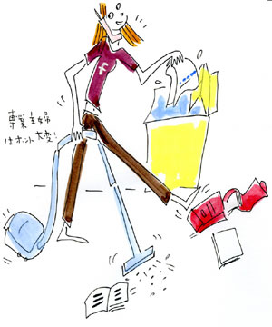 全世界の「専業主婦」のみなさーん! ほぼにちわ! 「全世界専業主婦大会 広島県代表」 フランソワーズでーす♪ みなさん、わたしをただの「主婦」だと 思っているようですが、チッチッチッ! 「主婦」でなく「専業主婦」であると言えるでしょう。 毎日家にいるし、お金儲けもほとんどしていないし 今の日本における「主婦界」のカテゴリーで言えば 「専業主婦」という欄に○を付けることになるはずです。 かれこれ、11年「専業主婦」として生きている私。 最近なにやら「世間の目」が冷たいって感じるの。 世の中は「仕事を持つこと」こそが「生きがい」で 「家庭」に閉じこもっている人は「怠惰」か 「消極的」か時には「思い切れない人」かっていう イメージがあるみたいで、 「子供も大きくなったら何か始めるべきだ」という ムードが「専業主婦」を取り巻く世界には充満しています。 で、おせっかいな人はそんなわたしたちに 発破をかけてきたりします。 でもねー、正直迷惑してるのよ、このムード。 そりゃあ、世の中には 「仕事」で「自分」を表現するのが 合ってる人がいて当然だけど、それと同じように 「家庭」で「自分」を表現するのが 合ってる人がいるのも当然なのよね。 わたしはその中間的な感じだけど、それもアリでしょ? あんまり、人の生き方をカテゴライズするのってねー。 何か、意味があるのかなー? まあ、ボヤッキーになってる場合じゃないのよね。 「専業主婦」って偉いのよ! もちろん「働く主婦」も偉いけど どっちが上ってことでなく 「専業主婦」をほめます! まず、暇だって思ってるでしょ? これが、違うのよ! 「専業主婦」って「専業主婦」ゆえのプレッシャーと 日々闘ってるんだから! だって、ぶっちゃけ時間はどうにでもなるわけだから 「PTAの役員」とか 「子ども会の役員」とか 「地域の活動」とか 断りきれないじゃない。 それに、「家事」もちゃんとしないといけない気がするの。 言い訳が何もないからさー。 だから、万一それでも家が散らかってるということは 己の能力のなさだというわけで 逃げも隠れもできないでしょ? きついのよ、能力が目に見えるって。 毎日、洗っては汚し 汚しては洗い。 食べては出し。 出しては食べ。 の、繰り返しの中で、季節はめぐり 終わりと達成感のないパラレルワールドの中で わたしたち「専業主婦」は夫の給料でやりくりし 「外で働いてもパートだし、節約したほうがいいのよ」 なんて、悲しい言葉を吐きながら、ひたむきに 生きて、生きて、生き抜く!! しかも、子供を生んで、生んで、生んで 育てて、育てて、育てる! これは、わたしのことだけど。 幼稚園や学校、地域のお付き合いは 働く主婦の分までも請負い、毎日おしゃべりには余念なく 仕入れた情報を分析し、結論を導く。 時には「評論家」のような方までいらっしゃるのよ。 芸能界から、近所のスーパーまで把握し ちょっと声を掛ければ、 20人くらいは集まるネットワークを持ち 人が来れば、手作りお菓子でもてなし 帰りには「趣味で作った」「トールペイントの壁掛け」とかを おみやげとして、お渡しするのよ! すごいでしょ? 子供が学校から帰る前に帰宅し なかなか宿題をしない子供にイライラしながら 電話がかかってきて、 「今日の『徹子の部屋』観た?」などと 重要な話をしつつ、たまねぎを刻む。 後ろでは冷凍庫から勝手に「チュウチュウ」を出す子供。 幼稚園児はなかなか自分で「ポッキン」できない。 ぐずぐずしてる間に溶け始め、そうなるともう大人でも 「ポッキン」できやしないのよ。 仕方なく、たまねぎを刻んでいた包丁を 一旦洗って切ってやるのよ。 で、「あー、もう溶けてるから床にこぼさないでよ!」 など、言いながら、電話に向かって 「ごめんごめん、で、何だっけ?」 といいながら、もう一度包丁を洗って、 また続きのたまねぎを刻む。 正直、この時点で 何を作っていたのかちょっとわからなくなります。 みんな、「家にいる」って思ってるから あてにされちゃって、大変よ! 子供なんて、見なきゃ腹の立たないことも 目の前でいろいろやられたら、やっぱ腹も立つしさ。 でも、「お母さんは学校も会社もなくていいなー」なんて 言われちゃうし。 「行けるもんなら、行きたいわ!!」 でもね、そもそも「主婦」って言い方もうおかしくない? なんか、時代遅れよね。 だって、社会じゃなんでも「横文字」じゃない? 「主婦」もここらで「横文字」にしてもらえないかねー? だって、「保険のおばちゃん」だって 今では「ファイナンシャルプランナー」だし 「美容師さん」だって「ヘアーデザイナー」なんでしょ? 「主婦」は?「ハウスキーパー」? うわー、ダサッ!! これは? 「シャチョウ」! 実はわたしの親友にわたしが「シャチョウ」という肩書きを 付けてあげたの。だってわたしたち「肩書き」ないし 「主婦」って呼ばれるのいやだし。 「専業主婦だって名刺持ってもいいんじゃない?」 ってことで名刺の内容はこう
