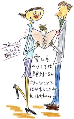 みなさん、ほぼにちわ。 2006年も残すところあと11ヶ月となりましたが やり残したことなんてないですか? 今からなら、まだ間に合いますので 心残りのない一年にしましょうね! さて、みなさんは工作は好きですか? わたしのようなママ暦13年の主婦にとって 工作、それは日常。 工作、それはリビングの悲劇。 工作、それは保存の恐怖。 なわけですが、毎日のように子供達は 空き箱工作や、「たのしい幼稚園」の付録の工作を 作って作って作りまくるわけです。 で、それを片付けて片付けて片付ける。 部屋は常に工作に溢れ 子供が忘れたころに古いものからこっそり捨てる。 とまあ、平和な日常に潜むちょっとした悪っていうんですか まあ、小さなサスペンスがあったりするわけですが。 そういう中で、また大変重要なことに気が付きました。 それは「のりしろ」です。 わたしたちはこれまで生きてきましたが ひとりで生きてきたわけではなく 誰だって、常に他人とのコミュニケーションの中で 生きてきていると思うのですが、どうですか? あなた? たぶん、そうでしょ? でも、時々すごい付き合いづらい人がいませんか? どうですか? たぶん、いるでしょ? そういう「付き合いづらい人」に何が欠けているか 知ってしまいました。 知りたくなかったのよ‥‥ 嘘でもよかったの‥‥ なんて、昼ドラ的小芝居はさておき。 そんな「付き合いづらい人」に朗報です!! そんな人に足りないのは、 ずばり「のりしろ」なんですよ! 工作をしていてわかるのは パーツとパーツを貼り合せることが 形を作るうえで必要不可欠なんです。 そのためには何はなくとも 「のりしろ」 これなくして、工作はできません。 どんなに仮面ライダーの顔がかっこよくても そこに「のりしろ」がなくては 本体たけじゃ貼り合わせたとき、どうなると思いますか? 仮面ライダーの顔の端っこが切れてしまうんですよ! 間違えて「のりしろ」を切り取ってしまったら最後 無理に貼り合せるもんだから 仮面ライダーなのか虫なのかわからない 怖いものが出来ちゃうんですよ。 で、子供がすごい泣くんですよ!! 本当にこの世の終りってくらい泣くんですからね!! わかってるんですか? そういうことからもおわかりのように。 人と人とのコミュニケーションも この「のりしろ」が大事なんです。 「自分」と「相手」の気持ちを繋ぐ「のりしろ」 どうも、イヤな気分にさせる人って この「のりしろ」がないんだよねー。 いきなり「本体丸投げ」みたいな‥‥。 例えば 「わたしってこういう人だから」みたいに言っちゃって 人に合わせようとしなかったり。 もろ余裕のないネットの中傷の書き込みとか 「誰か僕のことわかってよ!」ばっかで 人のことわかろうとしない人とか そういう人って「のりしろ」がないんです。 「のりしろ」って地味だけど とても大事な仕事をしているんですよ! 工作を人生に例えますけど いいですか? いいですね! よりよい人生をつくるためには 「のりしろ」なくして有り得ないっちゅうことなんです。 よりよい工作をつくるためにも 「のりしろ」なくして有り得ないっちゅうことなんです。 だから、とどの詰まりは 「のりしろ最高!!」っちゅうことなんです!! 特に長年連れ添った夫婦の場合 本当に「のりしろ」は失われつつあります。 「本体丸投げ同士」なので いびつな形になっていってしまいます。 ですが、お互いにちょっとでいいんですよ。 1ミリでも「のりしろ」を作れば そんな型崩れせずにいい感じになれるはずなんですって! みなさん、嘘だと思うなら 「たのしい幼稚園」を本屋さんで買って リビングのテーブルを紙くずだらけにして 工作をやってみてください!! 大事なことに気付き きっと胸が熱くなるでしょう。 だから、本当だってば♪