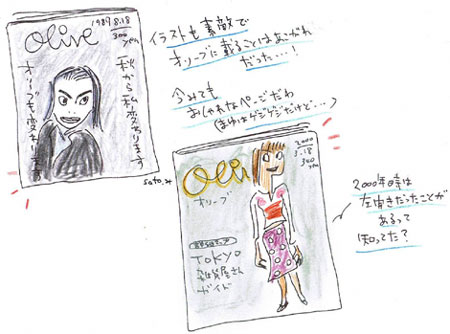 ●●●●●●●●●●●●●●●●●●●●●●●● 調べてみたところ、 雑誌、「Olive(オリーブ)」の創刊は1982年。 2000年に休刊となり、 その後いったん月刊誌として復活したものの 2003年に再び休刊となっているようです。 当時のバックナンバーを持っている人も 意外に多いのではないでしょうか? いま読んでも大切なことがたくさん書いてある、 というのは、なんとなくわかる気がしますね。 それではまた、次回の「ほめ道」で。 イラスト:さとうみどり |
