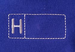 四角いステッチのなかに、