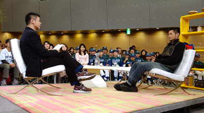 | 212人のファンの熱気の中、イチローさんにインタビュー。 バットもグラブも持っていない状態で、言葉だけで、 野球の選手が、その場の人たちの心を、打ち抜いたと思う。 とにかく、言わんとすることを、できるだけ 正しく伝えようという意志が、すばらしかった。 いつも、自分の「足らなさ」に目が行ってしまうという、 ある意味では不幸とも言える、厳しい視線。 あの視線が、イチローさんを、育ててきたんだろうなぁ。 テレビのためにおこなわれたインタビューですが、 BSデジタル放送5局のご厚意により、イチローさんとの 会話の一部を、「ほぼ日」でも、おすそわけいたします。 なお、3月30日に発売のイチローさんへのインタビュー本、 『キャッチボール ICHIRO meets you』(ぴあ)には、 このときの会話のすべてが掲載されていますから、 興味のある人は、そちらを、たのしんでみてくださいね。 |