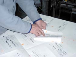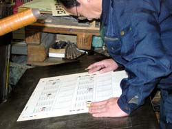 1枚ずつ手で紙を差し込んでは引き抜いていく。