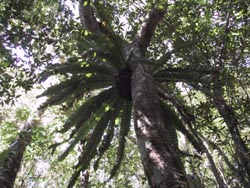 | その32 幸福感に包まれたある冬の日 奄美大島の最高峰は湯湾岳で、694mです。 たかだか700m未満の山に過ぎませんが、 沖縄県の最高峰は石垣島の於茂登岳526mですので、 これでも渡瀬線以南で最も高い山なのです。 そして湯湾岳一帯には手つかずの原生林が残っています。 冬晴れのある日、この山を散策してみました。 12月というのに木々は緑の葉をたわわに茂らせ、 紅葉もなければ、落葉もありません。 常緑広葉樹の森ですので当然なのですが、 本土から来た人の目には異様に映るかもしれません。 柔らかい冬の日差しを浴びた森は、 それでも夏に比べるとずいぶん優しい表情をしています。 下草が少なくて歩きやすいし、 陽光の照り返しもなく快適です。 気持ちがいいから、通常のルートを外れ遠回りしよう。 小さなドングリがたくさん落ちています。シイの実です。 シイの実は鳥やクロウサギ、ネズミたちの好物です。 東北の山でブナの林が生物たちをはぐくむように、 奄美の森ではイタジイが豊かな生物層を支えているのです。 ところどころ地面が乱暴に掘り起こされています。 この狼藉、リュウキュウイノシシが餌をあさった跡です。 見上げると、立派な植物が樹木の幹にとりついています。 シマオオタニワタリ。あそこにも、またあっちにも。 転々と、まさに谷を渡っているかのよう。 その15でも登場したシマオオタニワタリ 陽だまりに出ました。ちょっと休憩します。 すると、あちらこちらから鳥たちが姿を現します。 シジュウカラ、ヤマガラ、コゲラ。 ウグイス、メジロ、サンショウクイ。 シロハラ、そしてルリカケス。 一羽の鳥が去ると次の一羽。一つの群れが去ると別の群れ。 見飽きることがありません。 とはいえ、いつまでも見ているわけにもいきません。 腰を上げて頂上を目指します。 山頂に近づいたところで、林床をなめるように見渡します。 イジュの樹の根元、枯れ葉の間。 あった、ユワンツチトリモチの花。 湯湾岳の頂上付近にだけ自生する固有種の寄生植物で、 この時期、赤いイチゴみたいな花を咲かせます。 今日の目的は、実はこの花を見ることだったのです。 キノコのようなユワンツチトリモチの花 帰りはうきうき気分で一気にくだって、トータル4時間。 その間、誰一人とも出会わなかったのです。 山もよし、森もよし、ここにいる自分もまたよし。 この素晴らしい湯湾岳を貸し切り状態。 奄美に移住して本当に幸せだ、と思ったのでした。 |