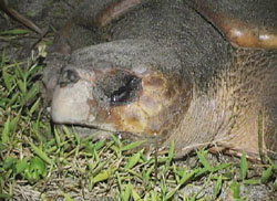 母ガメの顔のアップ。泣いているように見えるでしょ。
