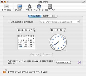 | ほぼ日式・除夜の鐘は、 みなさんがお使いのパソコンの時計に合わせて動くんです。 だから、ちゃんと時間を合わせてくださいね。 それと、ちょっとこれを確認してください。 ●ウインドウズをお使いの方 「スタート」→「設定」→「コントロールパネル」と 選んで、コントロールパネルのなかの、 「地域」を選びます。 そのなかに、「日付」があります。 そこにある「短い形式」を、図のように、 “yy/mm/dd”に、「区切り記号」を“/”に しておいてください。 ![]() それと、「時刻」のところ、これは、 「時刻の形式」を“H:mm:ss”にしてください。 ![]() ●マック(OSX)をお使いの方 「アップルメニュー」→「システム環境設定」→ 「日付と時刻」と選んでいって、時計を合わせてください。 ![]() さらに「言語環境」のなかにある、 「日付」の「カスタマイズ」を選んで、 「短い日付表記」を、“年.月.日”、 「区切り記号」を“.”にしてください。 ![]() 同じく「時刻」の「カスタマイズ」を選んで、 「区切り記号」が、 “:”になっていることを確認してください。 ![]() ●マック(OS9)をお使いの方 「アップルメニュー」→「コントロールパネル」→ 「日付 & 時刻」と選んでいって、 そのなかにある「日付の書式」を、選びます。 ここで、「短い日付表示」を、“年.月.日”、 「区切り記号」を“.”にしてください。 ![]() また、同じく「日付 & 時刻」のなかの、 「時刻の書式」の「区切り記号」が、 “:”になっていることを確認してくださいね。 |