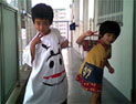 両親は、このTシャツを着て喜んでいる娘を見て,