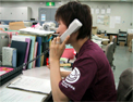 会社で電話を取ってるカバT、上司の椅子に座ったカバTです。