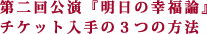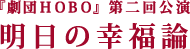 ともかく、 今回の感激団では、 その「劇団HOBO」の第2回公演、 「明日の幸福論」を おすすめいたします。 |