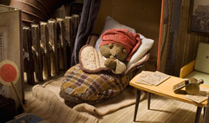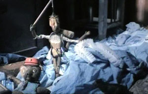 『屋根裏のポムネンカ』ですよ。 その人形劇じゃないです。 人形を使った動画ですけど、 ストップモーション・アニメーションといって ひとコマずつ、写真を撮るように撮影して、 それをつなげて映すと動いて見える。 そういう手法です。 |