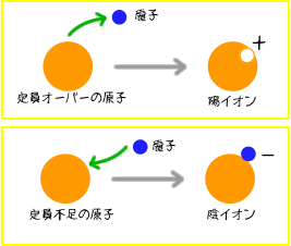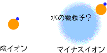 原子にある陽子と電子の数はぴったり同じ! だから、その原子全体をみたときの電荷は プラスでもマイナスでもない中性になります。 でも、実は電子の居場所には「定員数」が決まっています。 そして、原子は電子の数を「定員数ぴったり」 にしたがる場合があります。 このときイオンがうまれます。 定員オーバーの場合は電子を追い出してしまいます。 そうすると、その原子は電子が足りなくなり 電荷が正になるので「陽イオン」になります。 逆に、定員数よりも少ない場合は 電子を新たに受け入れるので その原子は電荷が負になって 「陰イオン」になるというわけです。 ![]() マイナスイオンの本題にはいるまでの 前置きが長いですね〜。 「目に見えない」ものの話ばかりで ちょっと眠くなってしまったかも。 お待たせしました! ようやく本題であるマイナスイオンの話に進みます。